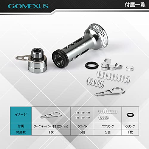 アルミ製で36.2mmの長さで6.5gと軽く、装着してもリールの重量が重たくなりすぎないのが特徴です。
