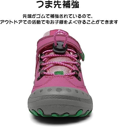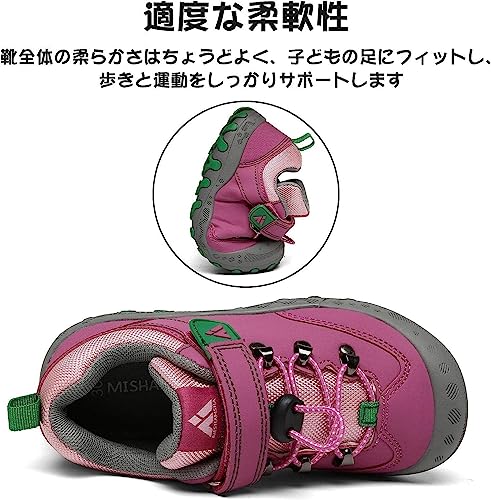 使いやすいマジックテープと調節可能な靴紐を採用した、お子様1人でも着脱しやすいコスパの良いハイキングシューズです。