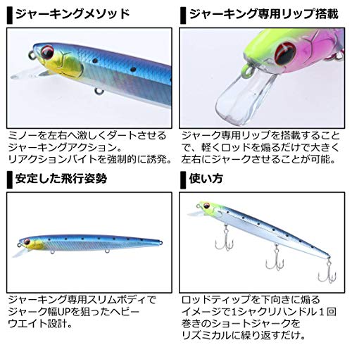 飛距離を出すために25gのヘビーウェイトに仕上げられており、ショアからのサワラ釣りでも使いやすいジャークベイトです。