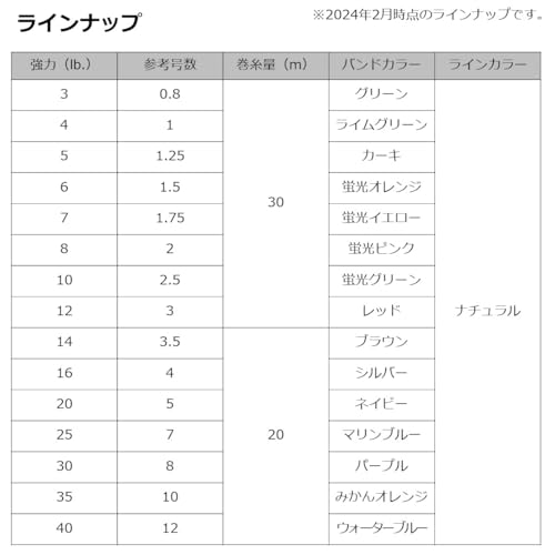 スプールバンドの色によって一目で号数をチェックできるので、複数購入しても迷わず取り出せるでしょう。