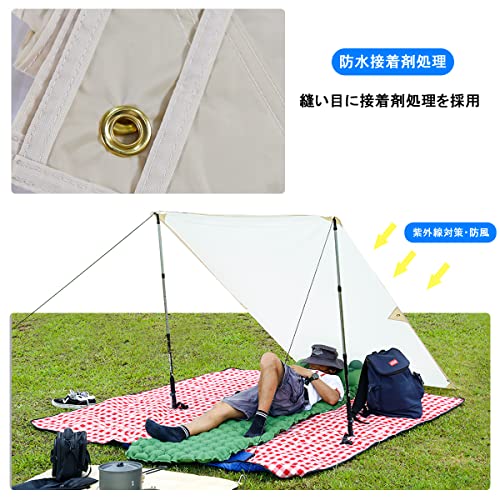 ハトメが6か所ありタープとしても使いやすく、登山杖を使うことで天幕としても活躍してくれます。
