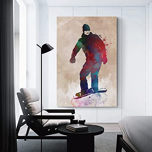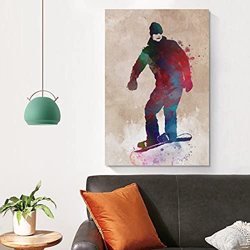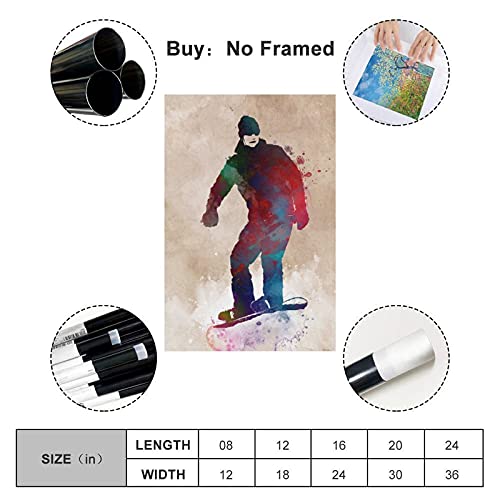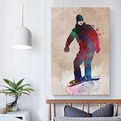 こちらは297mm×420mmの長方形で、スノーボードの男性を表している水彩画ポスターです。