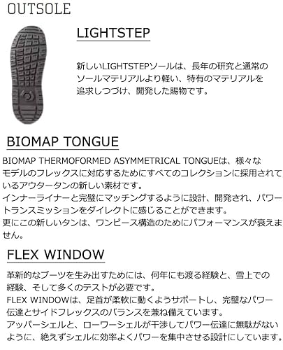 柔らかいフレックスで動きやすいブーツなので、板の操作がしやすく、スノーボードの上達をサポートしてくれるアイテムです。