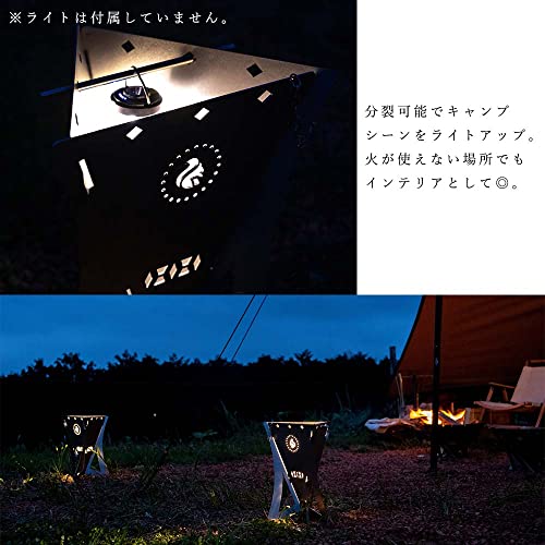 自宅にいる時でも、焚き火台の中でライトを照らせば、綺麗なオルテガ柄のライトアップを堪能することができます。