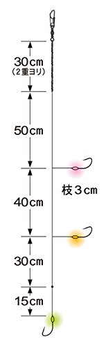 ハリスの長さが下の段ほど短くなっていて、根の荒れた場所を狙うときも根掛かりしにくく、岩場や海藻の多い場所にも強い作りになっています。