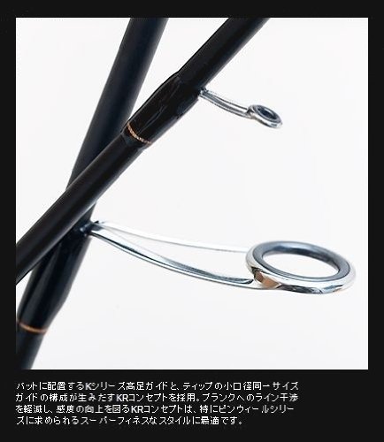 ステンレスフレームsic-sリングKガイドを搭載し、軽量かつ高感度なIPSリールシートにより1g以下のジグも抜群のキャストフィールと操作が可能で感度の面においても十分なロッドといえるでしょう。