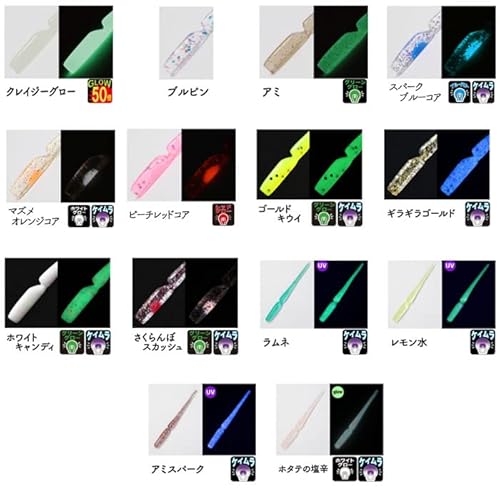 ワームボディ自体のカラーはもちろん、発光時のカラーやラメのカラーなどもチェックしたいポイント。