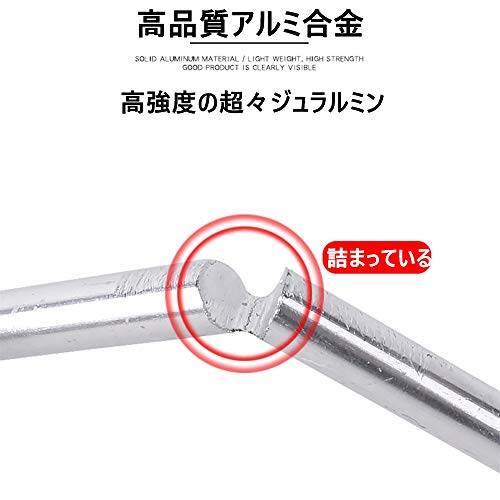 素材には高強度のアルミニウム合金が使われており、折れづらく曲がりにくくなっています。
