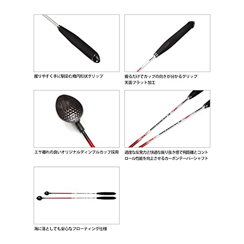 カップに微妙に角度を付けることで、撒き餌のまとめやすさと振り抜きやすさを向上させ、ジャストフィットハードグリップは握り心地も抜群です。