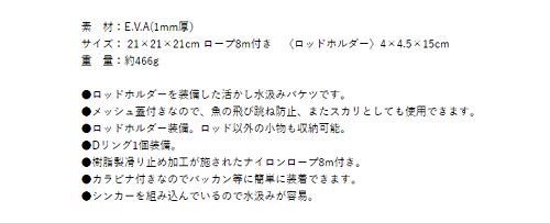 この水くみバケツはメッシュ蓋が付いているため、餌を放り込んで、海に投げ込むことで解凍用にも使えます。