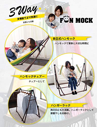 ハンモックの他にチェアやハンガーラックとしても使用できる、ベランピングにぴったりのハンモックです。