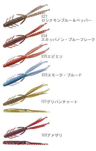 細身のワームですがヒゲとフラットテールが異なった動きを見せるのでボリューム感のあるアクションを発生します。