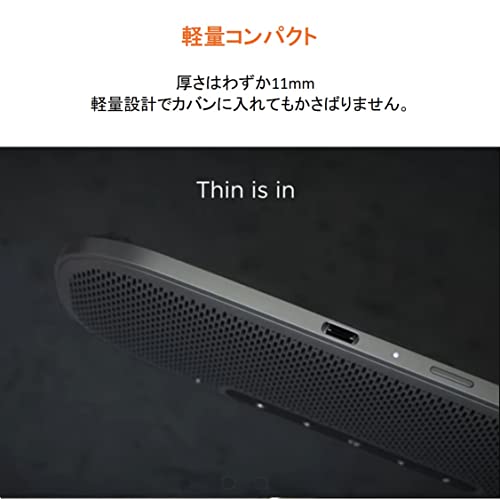 厚さはおよそ11mm、重さは145gと薄型、軽量設計となっており、ノートPCケースなどに入れてもかさばらず持ち運べます。