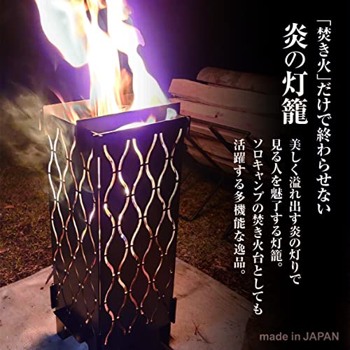 焚き火を楽しむだけでなく、灯籠としても利用可能な焚き火台。