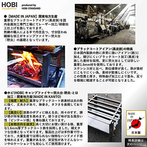 熱に強く錆びにくい1.6mmの黒皮鉄を使用しており、その重厚感のある見た目は、焚き火の炎の魅力を引き立ててくれます。