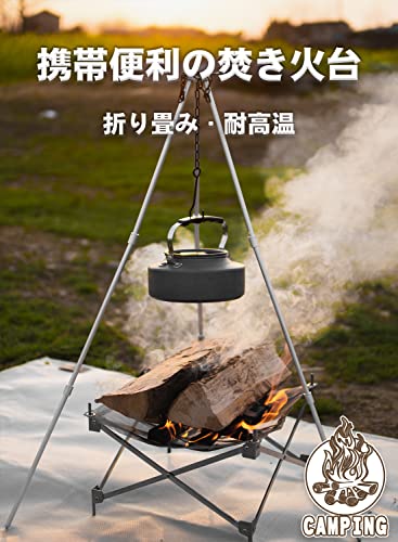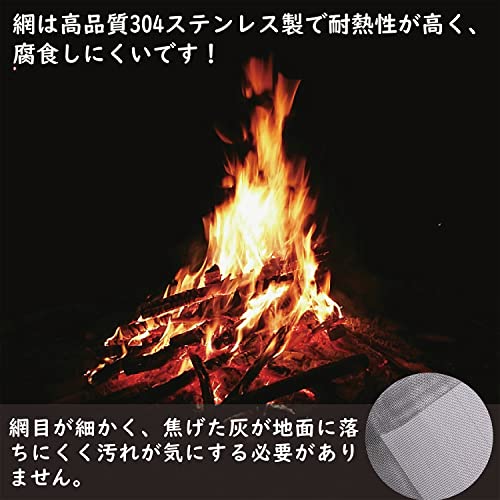 折りたたみ式の支柱とメッシュを組み合わせた焚き火台で、組み立てから片付けまでストレスなく行えます。