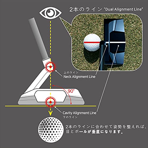 アドレス時にシャフト根本とヘッドにある2本の線を合せることにより、正確なパットが可能に。