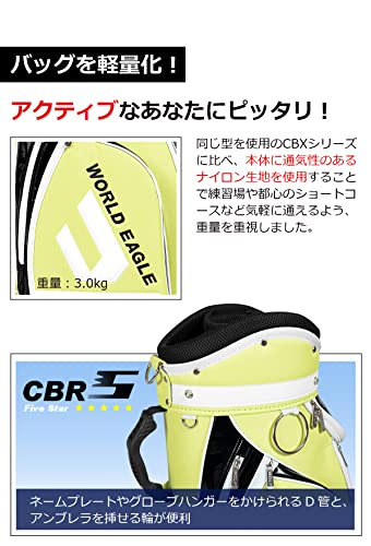 黒の素地にバランスよく配色されたグリーンの面とオレンジのラインが映え、ポジティブな印象を与える大容量かつ軽量キャディバッグです。