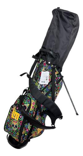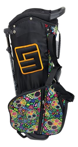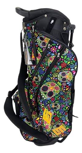 ドクロと花の総柄が目を引く、目立つデザインのスタンドキャディバッグで、派手な柄が好きな方におすすめです。