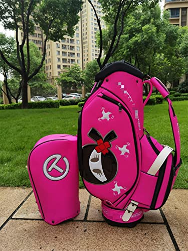 鮮やかなピンクが目を引くキャディバッグで、高品質のPUレザーを使用しています。