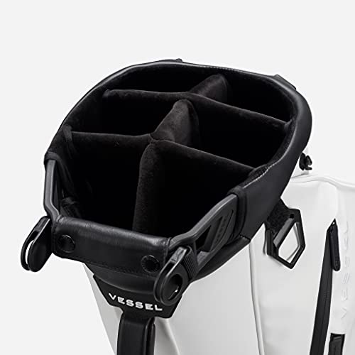 編み込み風エンボスとシンセティックレザーを使用して作られており、スポーティーな見た目が特徴のキャディバッグです。