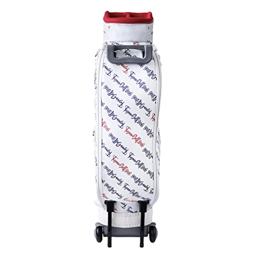 レディース用のキャディバッグで、筆記体がモチーフになったトリコロールカラーの爽やかなデザインが特徴です。