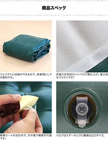 使用サイズが、長さ198cm、幅148cm、厚さ20cmと大型のエアーベットで、キャンプではもちろん、来客用としても使えるアイテムです。