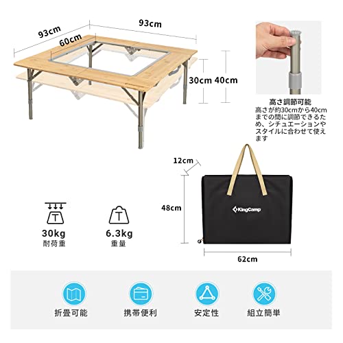 食器や調理器具はもちろん、照明やキッチン用品も置くことができ、キャンプサイトでも快適なリビングスペースを確保することができます。