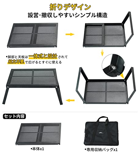 無骨な雰囲気のソロ〜2人キャンプにぴったりのアイアンテーブルで、焚き火の五徳としても使用できます。