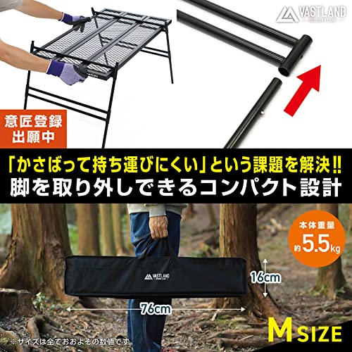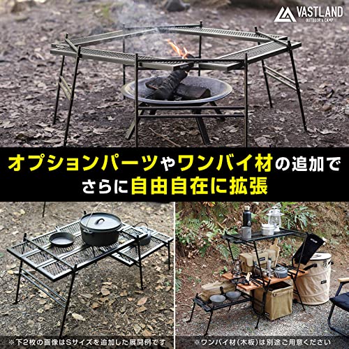 組み合わせによってラックや焚火テーブルとしても使え、別売の拡張パーツで無限にレイアウト可能。