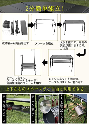 ソロ〜グループキャンプにも、本格的な調理台としても優秀な、組み合わせで様々な用途に使用できるテーブルです。