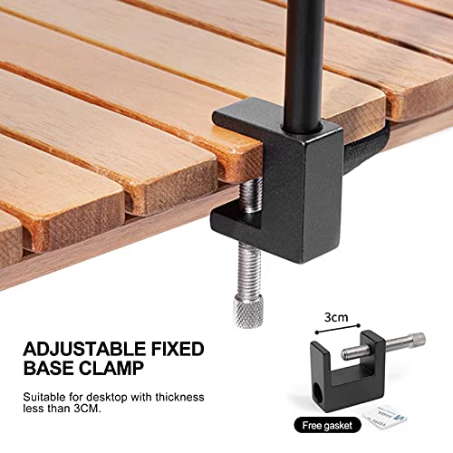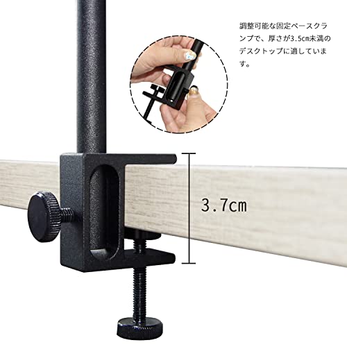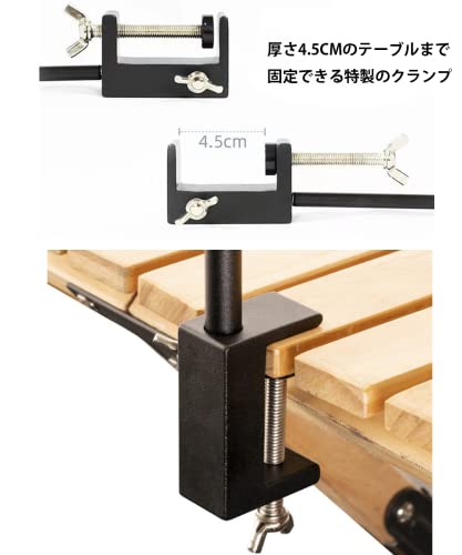 取り付けはクランプ式ですので厚さ4.5cm以内で、テーブルやイス・ラックなどにも取り付け可能です。