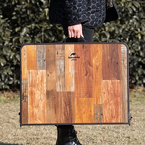重量はわずか1.06kg、収納サイズは44cm×15cm×7cmの軽量コンパクトな木目調テーブルです。