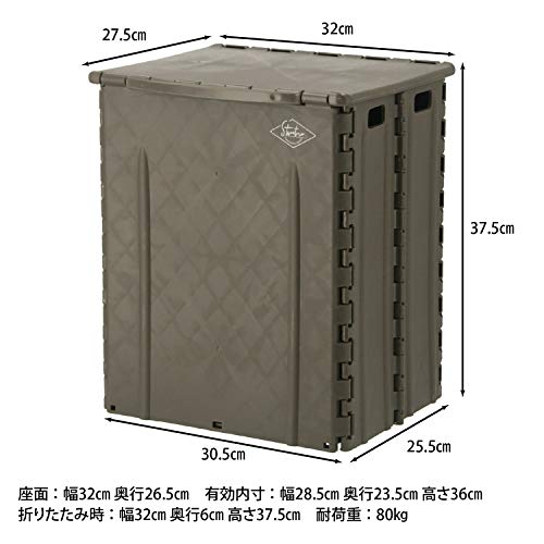蓋付きのゴミ箱として使用できる折りたたみスツールで、無骨なカーキの色合いが非常におしゃれな製品です。