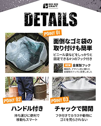 ゴミ箱としてだけでなく、バケツや薪入れなど、様々な用途に使え、アウトドアはもちろんインドアでも非常に重宝するでしょう。