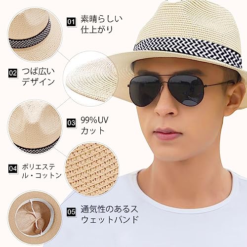 メンズ 春夏 つば広 麦わら帽子(B0928NZ6GK)