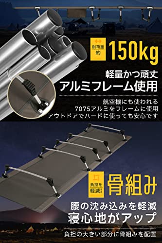 日本人の体型にフィットするサイズに設定されたコットで、耐荷重150kgと耐久性も抜群のおすすめの製品です。