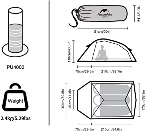Naturehike Cloudup32.4kg180×215×175cm20Dシリカゲルナイロン、210Tポリエステル、150Dオックスフォード、7001航空アルミ合金