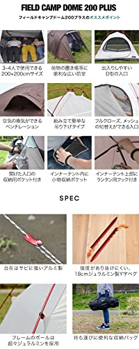 FIELDOOR フィールドキャンプドーム200 3.5kg355×205×135cm20Dリップストップポリエステル、超々ジュラルミン