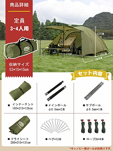 GOGlamping ツーリングドーム 4kg280×215×131cmポリエステルタフタ、オックスフォード