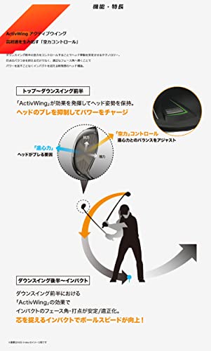 また、ウイング状の溝をヘッドに付けることにより、遠心力でのヘッドのブレを抑制して振り抜きやすさを向上。
