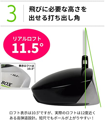 ロフト角は12度〜13度、シャフトフレックスはL&A採用で、初心者には扱いやすく振り抜きやすい仕様になっています。