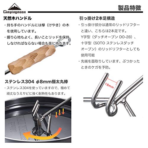 どんな形状のダッチオーブンにも対応する、キャンピングムーンのステンレスリフターです。