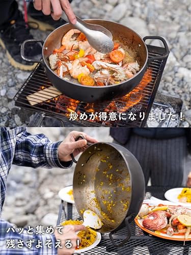 キャンプやアウトドアでの使用を前提に考えて作られているため、バーベキューやピザ作りなどをする際に重宝します。
