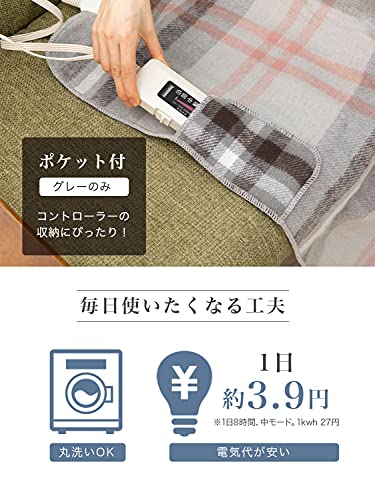 アクリル素材なので耐久性と保温性に優れた電気ひざ掛けです。
