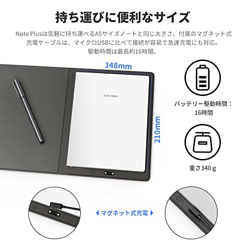 | XPPen NotePlus | 10インチ | 26.1×19.9×3.7cm/810g | 16時間 |