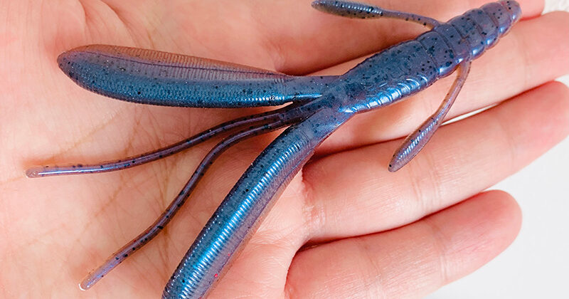 またスイミングやミドストで使うと、パドルが水の抵抗を受けて細身のボディをくねらせ、ザリガニが逃げる時のような波動を出します。