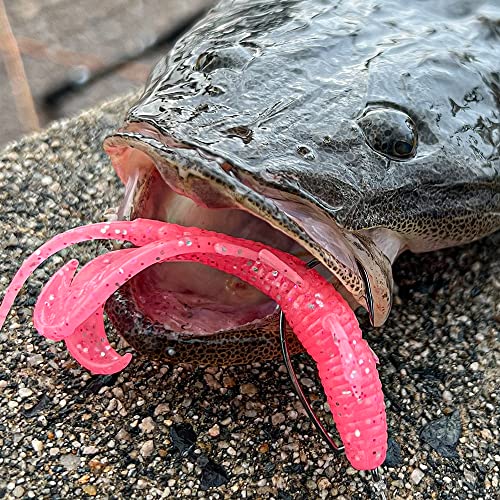 一方で、テールの付け根の部分を片方カットするとカーリーテール風のアクションに、テールの先端をカットするとクロ―系ワームのようなアクションに変化させることができます。