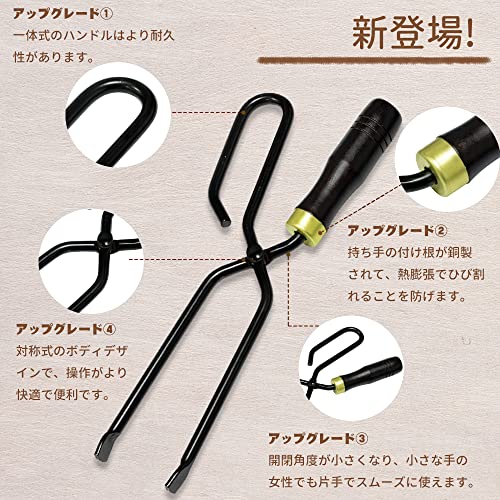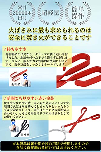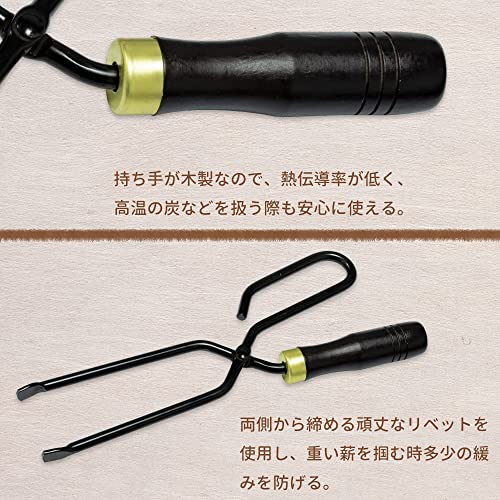 持ちやすいグリップで薪や炭をしっかりホールドする使いやすい火バサミです。