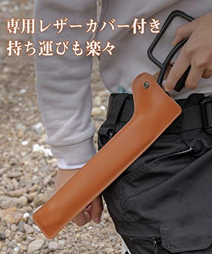 35cmという長すぎず短すぎない、持ち運びにも便利な長さで、グリップには天然木が付いてキャンプにマッチしたデザインです。